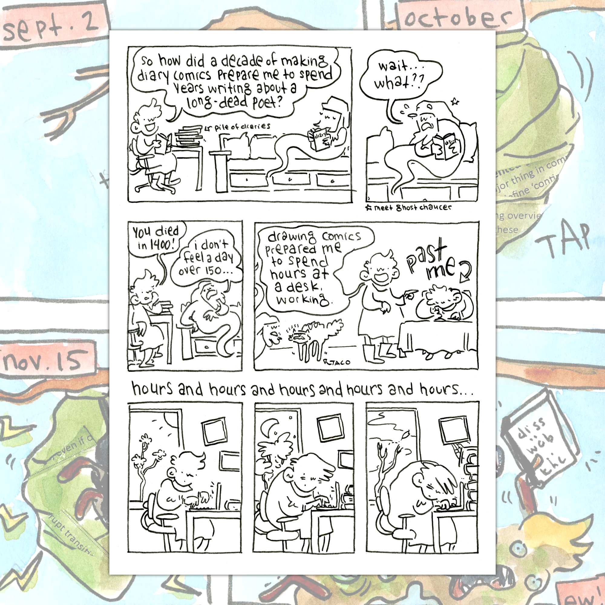 She say: This comic playfully explores my experience (as a middle-aged mother and a cartoonist) spending entirely too much time thinking about eighteenth-century retellings of naughty medieval poetry.