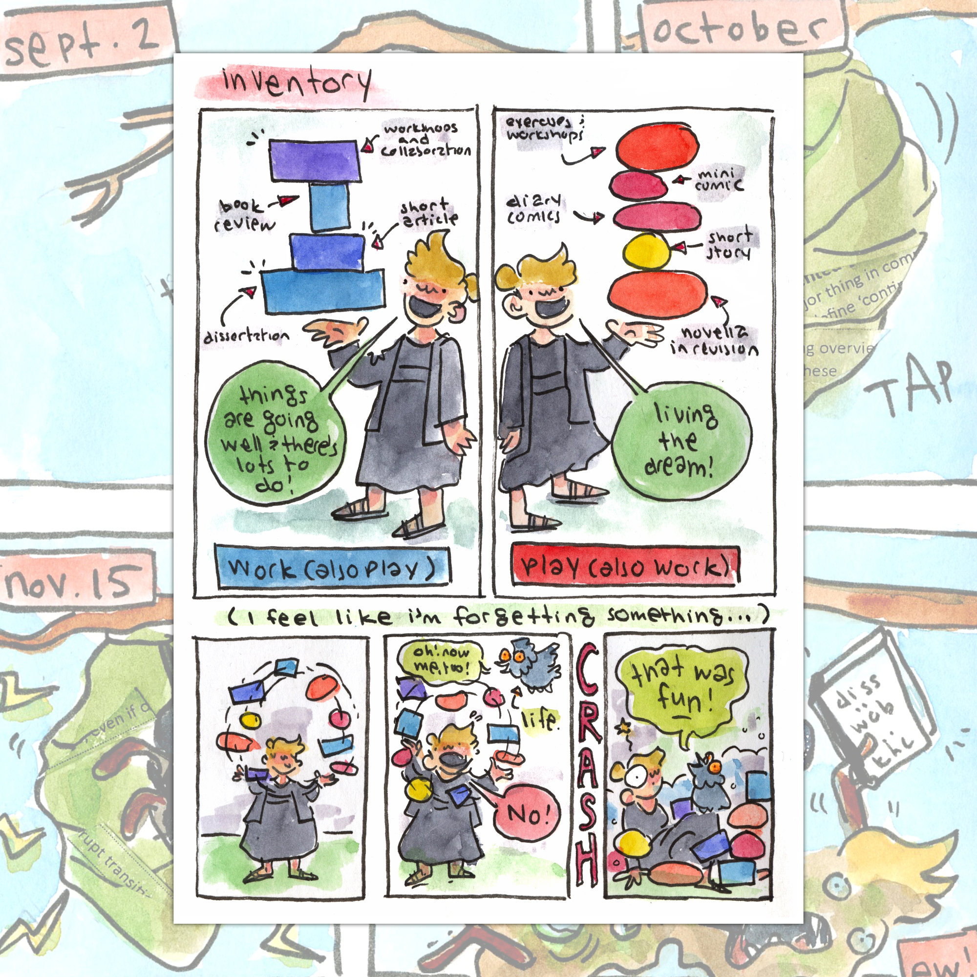 Combining reflections on the final year or so of her doctoral dissertation with diary comics, Kristen highlights the highs (conference shenanigans) and lows (DESPAIR) of graduate studies — all with her usual charm and candid reflections.